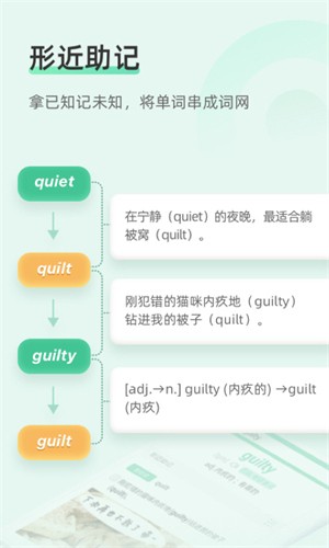 单词置于应用场景中串联记忆,另有各类助记法帮助记忆,学习更高效。