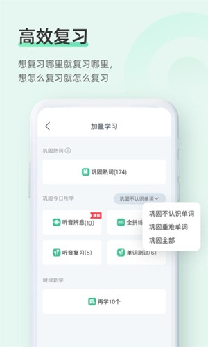 无需时时盯着手机屏幕,用耳朵进行单词学习,休闲时刻强化记忆。
