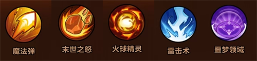 技能选择:魔法弹+末世之怒+火球精灵+雷击术+噩梦领域