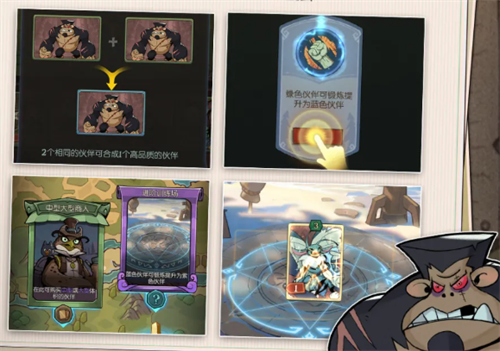 通过奖励、合成和训练场能升级伙伴,让他们在旅途中越来越强,从各种商人、圣光护佑、鸡尾酒特供等随机事件中,可获得增益效果,最后赢下奖杯意味着获得胜利,要是输掉会扣除信心,输掉的朋友可以更换花匠 、 铁皮人 、龙女主角重新开启挑战。