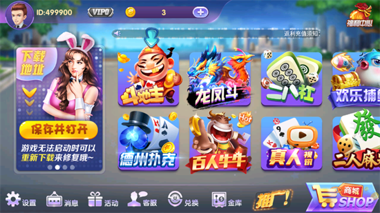 有许多令人兴奋的竞技游戏,如斗牛、麻将、捕鱼等。