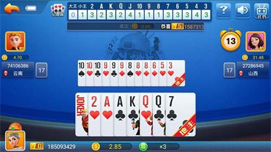采用了3D技术打造精美画面,场景真实,配乐欢乐,真实还塬线下棋牌室游戏体验。