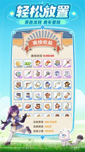 1.不停地轻松放置和升级离线福利,游戏中提供各种福利。