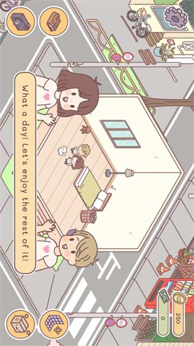 2、简单舒适的手绘风格屏幕,为玩家营造舒适温馨的环境,你可以在家里增加房间,甚至可以拜访邻居并解锁特殊时刻。