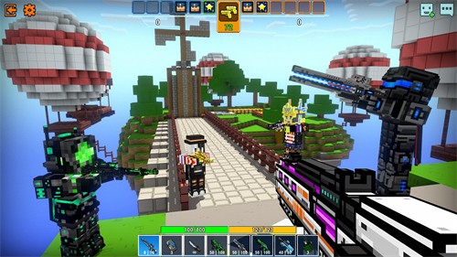 1、经典像素3D绘画风格:复古的方块美学与高饱和度的色彩碰撞,创造出独特的视觉效果,战斗场景就像涂鸦战场一样生动。